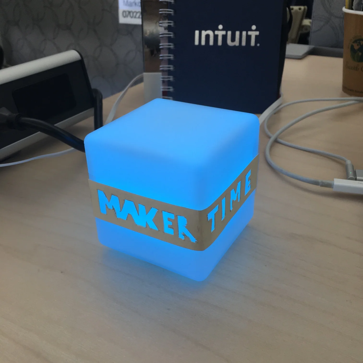 Maker Time is a scheduled no-meeting time in the Innovation and Advanced Technology team at Intuit. In an effort to explore making and using ambient light as a notification system, I used the OrbNext and IFTTT to create a light that turns on during the specified no-meeting hours to let everyone know its Maker Time.
